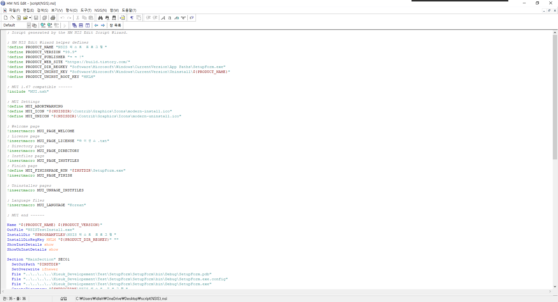 1. HM NIS Edit 프로그램으로 설치 스크립트 생성