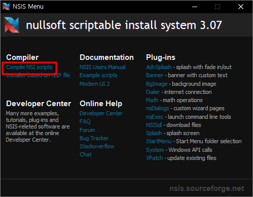 2.1. 스크립트 생성이 완료 되었다면 NSIS 프로그램을 실행한다.