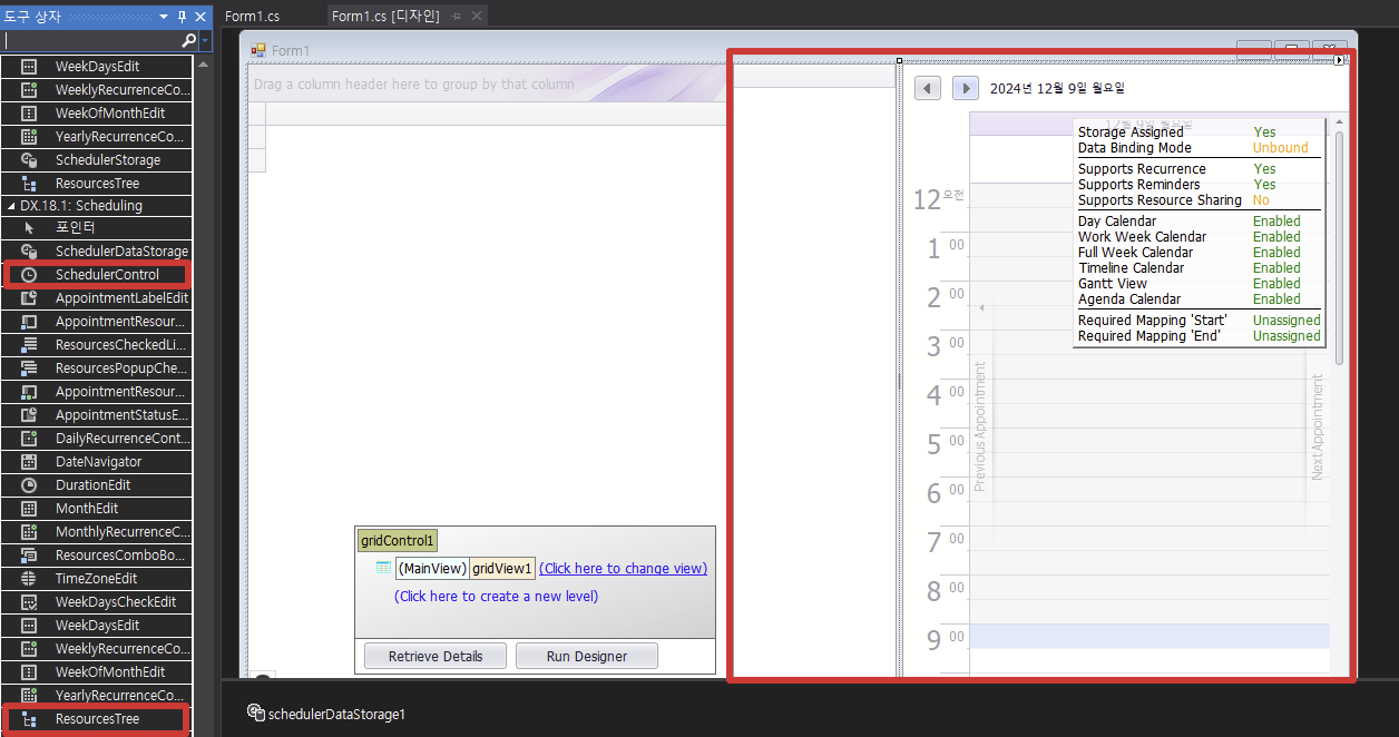 3. Control 추가(SchedulerControl, ResourceTree(선택사항))