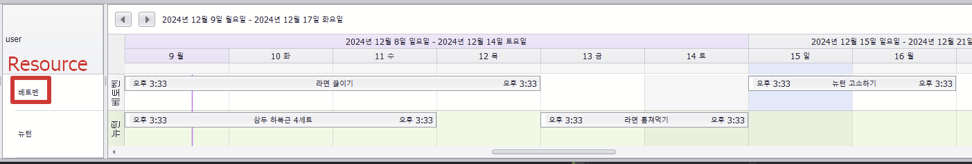 하지만 일정정보를 기반으로 생성하는 경우 일정정보가 없는 Resource는 화면에 표시되지 않음.
