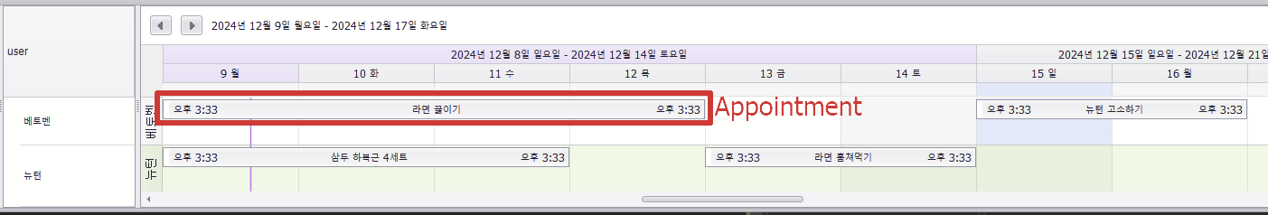 SchedulerControl을 구성하는 데이터는 Appointment로 이뤄진다.