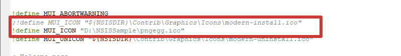 아이콘 경로의 ${NSISDIR}은 NSIS가 설치된 상대경로를 의미하며, 설치된 경로를 찾아가보면 사용할수있는 기본 아이콘을 확인할 수 있다.