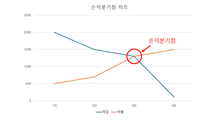 손익분기점은 수익이 생기는 시점이기 때문에 본전+1대를 더 팔면 손익분기점.