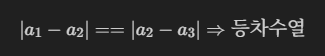 - 등차, 등비를 확인 하기 위해서는 세개의 수열 값만 있으면 된다.