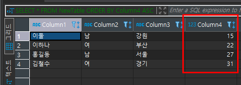 SELECT * FROM NewTable ORDER BY Column4 ASC