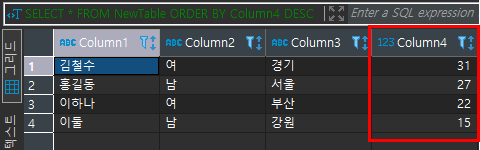 SELECT * FROM NewTable ORDER BY Column4 DESC