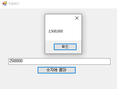 string str =string.Format("{0:#,###}", num) //num을 문자열 변환 & 콤마표시 후 str에 할당