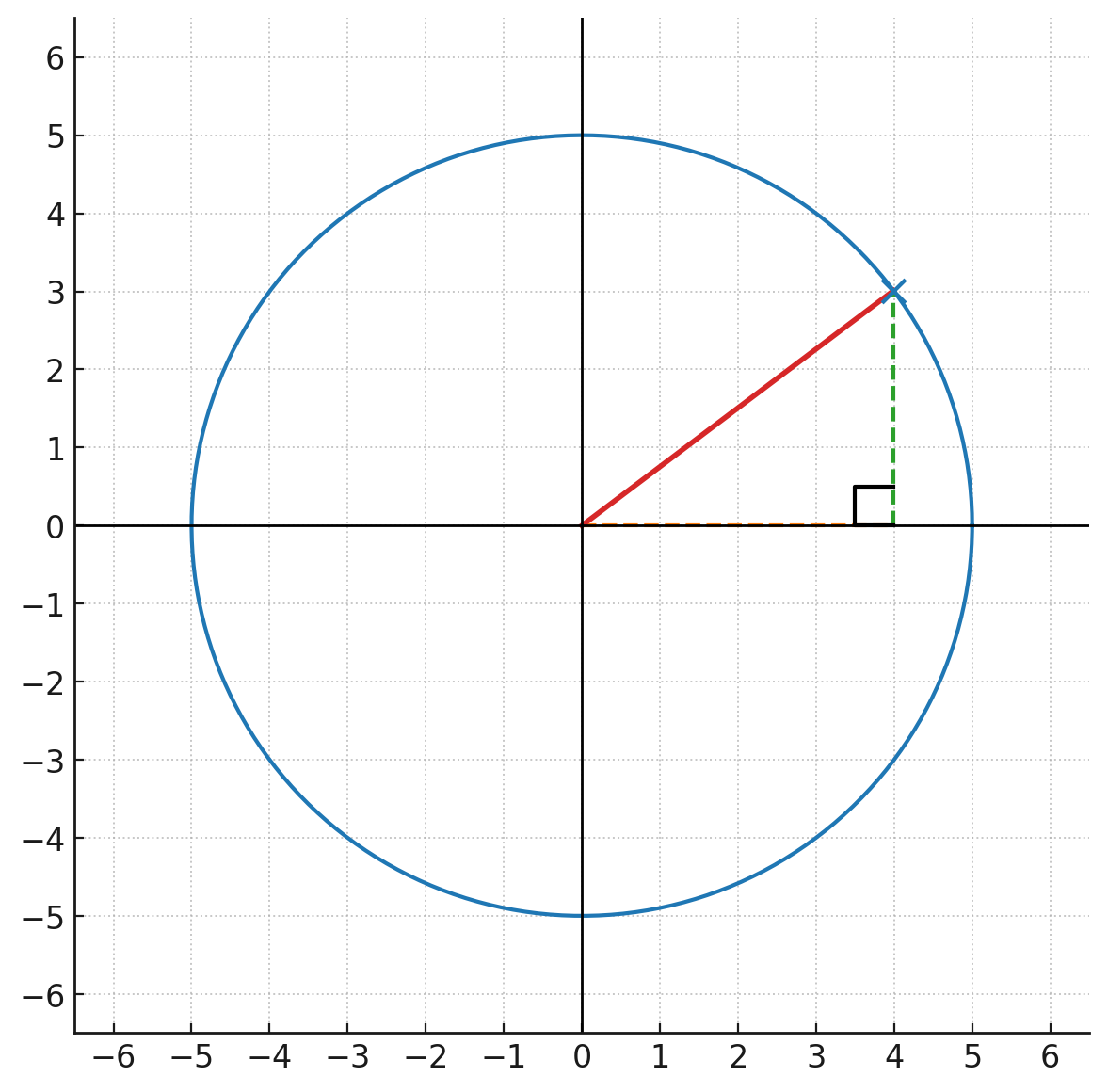 - 0,0에서 부터 x,y 까지의 거리를 구한다. ( 피타고라스의 정리 a^2 + b^2 = c^2 )